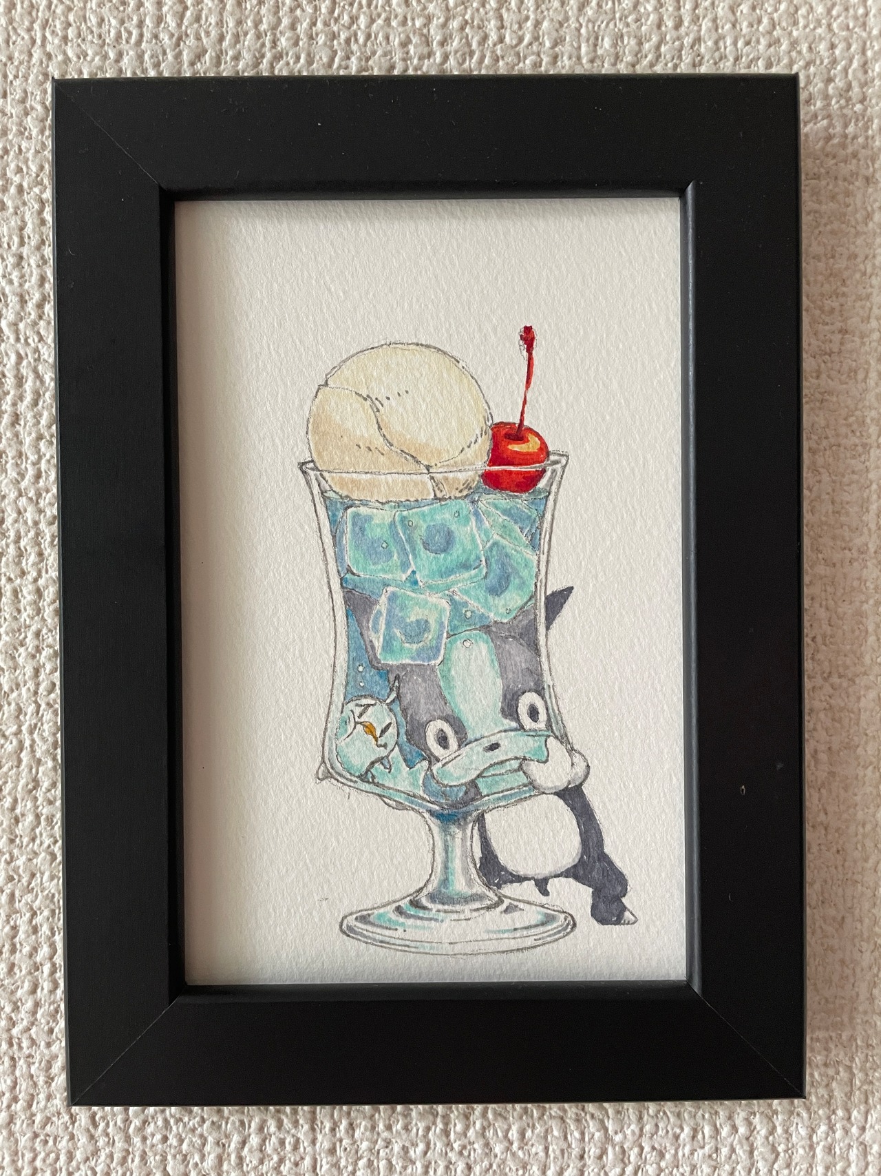 ボストンテリア クリームソーダ手描きイラスト 原画 | ぼすとんず