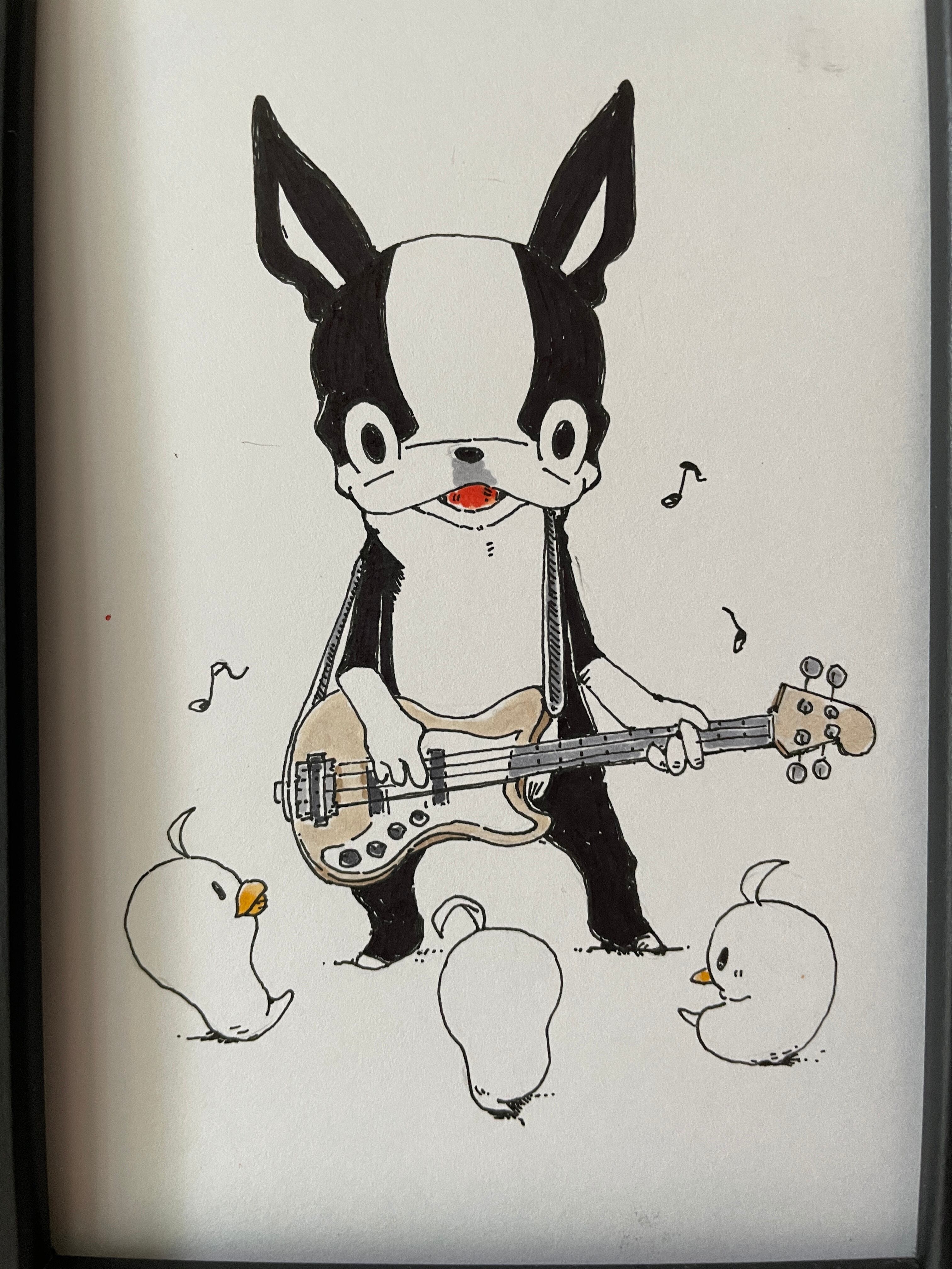 ボストンテリア ベースのリズム手描きイラスト 原画